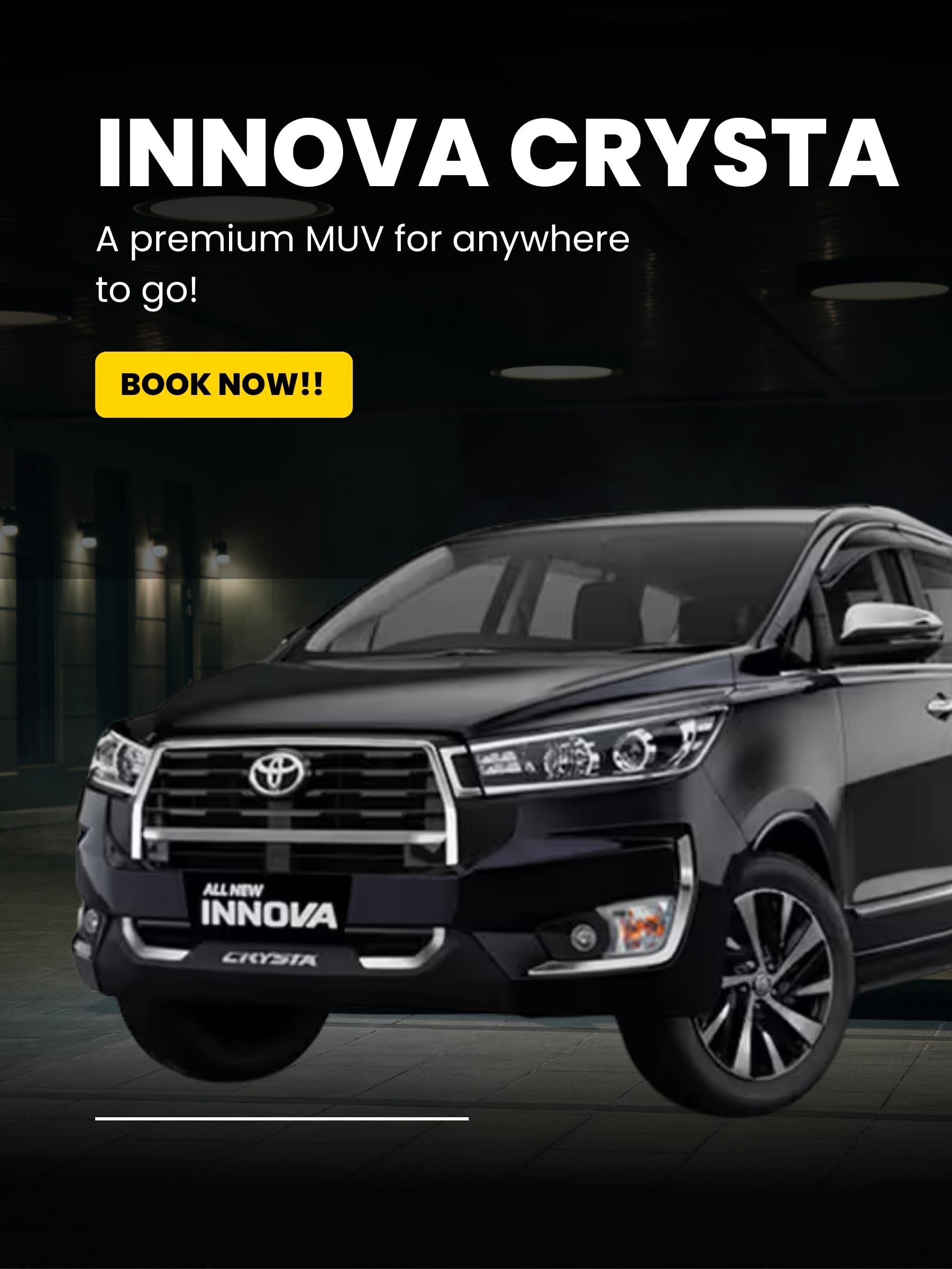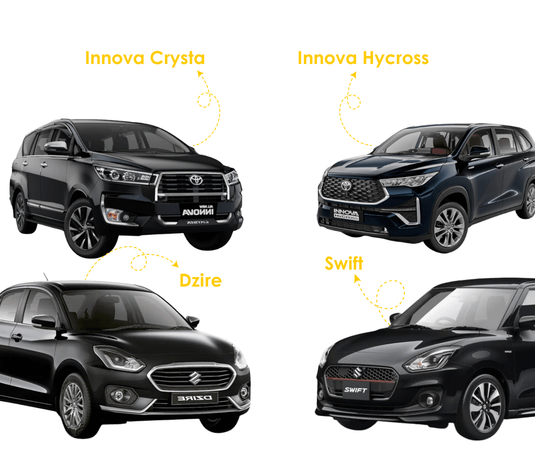 | Innova Crysta | ₹3000 | ₹3500 | ₹4000 | ₹2500 | ₹3500 | ₹3500 | ₹6500 | ₹55000 |